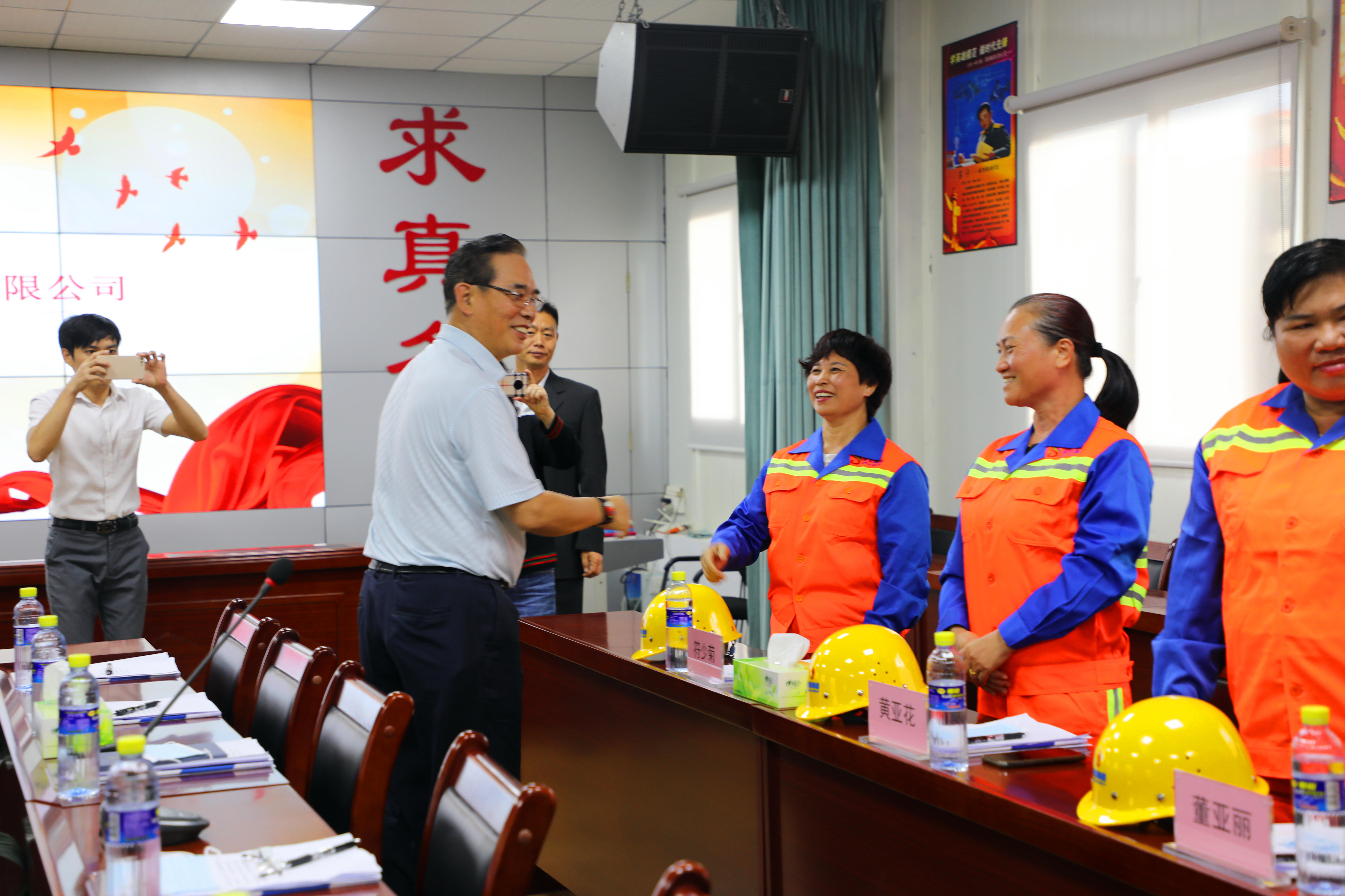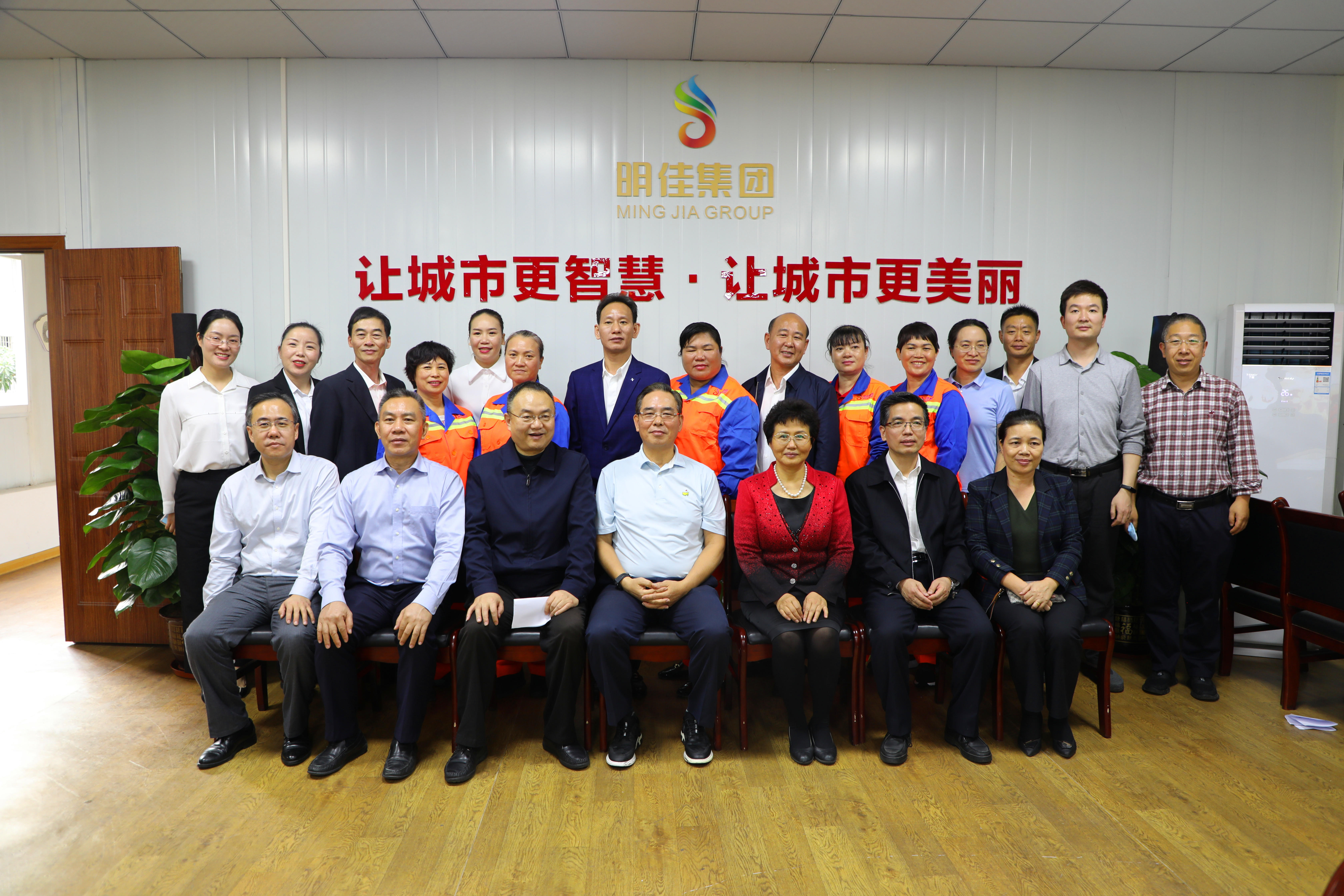他肯定了明佳集團工會取得的成績,并親切慰問了現(xiàn)場的環(huán)衛(wèi)工人,與他們一一握手,并合影留念。